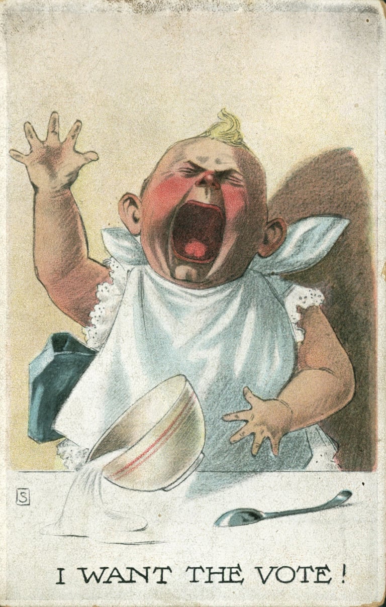 Neigiamas feminizmo įvaizdžio formavimas prasidėjo dar pirmosios feminizmo bangos laikotarpiu, atsiradus sufražisčių judėjimui. Antisufražistiniai judėjimai į kuriuos būrėsi asmenys, nepritariantys moterų teisei į rinkimus, platino įvairaus tipo plakatus ir karikatūras, kuriose moterys buvo vaizduojamos kaip neatitinkančios to meto moteriškų įvaizdžio normų (bjaurios, piktos, irzlios, rėkiančios, nepatrauklios, nerūpestingos) bei žeminančios vyrus. Sufražistės buvo lyginamos su isteriškais vaikais, siekiant pabrėžti, kad moterys nesugeba priimti racionalių sprendimų ir vadovaujasi tik emocijomis [2]. Sufražistinis judėjimas buvo vertinamas kaip nukreiptas prieš šeimą ir skatinantis moterų nesirūpinimą vaikais. Tokį pašiepiantį moters vaizdavimą lėmė itin siauri moters lyčiai priskiriami grožio standartai, palikę gilų įspaudą iki šių dienų. Moters vertė buvo suvokiama per jos išvaizdos, nuolankumo vyrui ir patrauklumo prizmę, todėl bet kokie lyties normų neatitikimai buvo vertinami itin neigiamai.